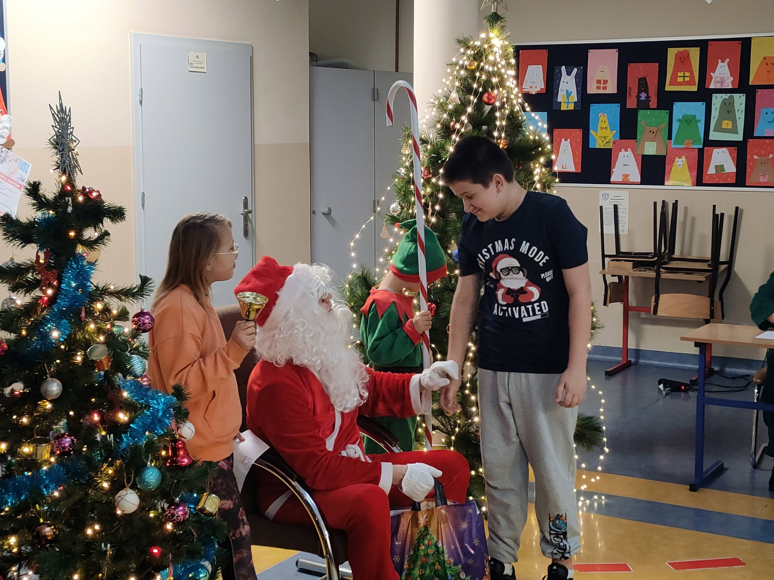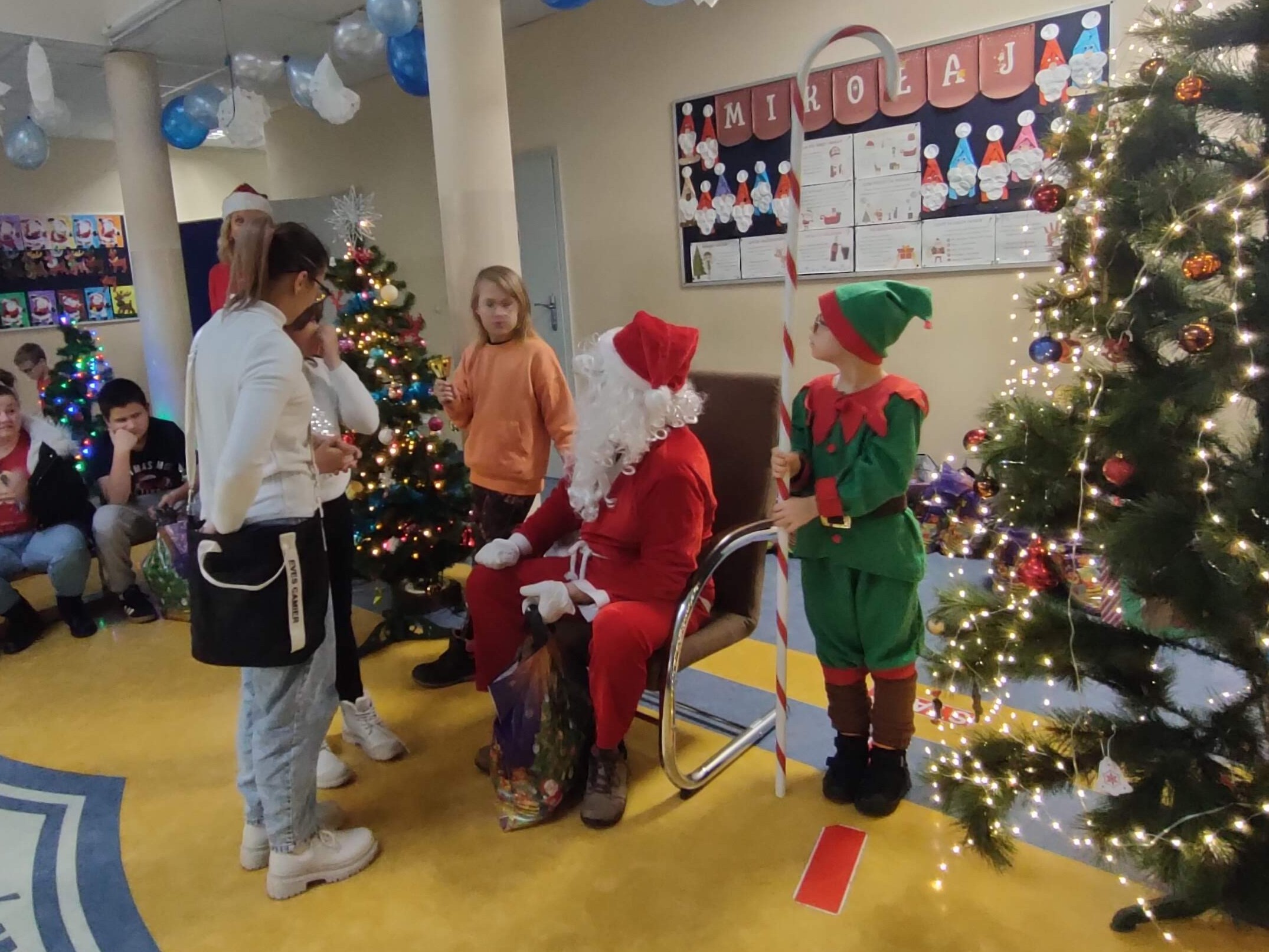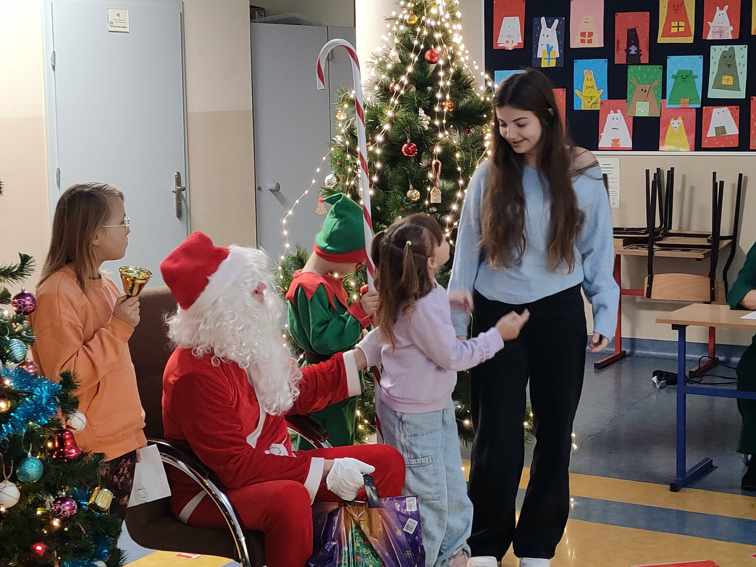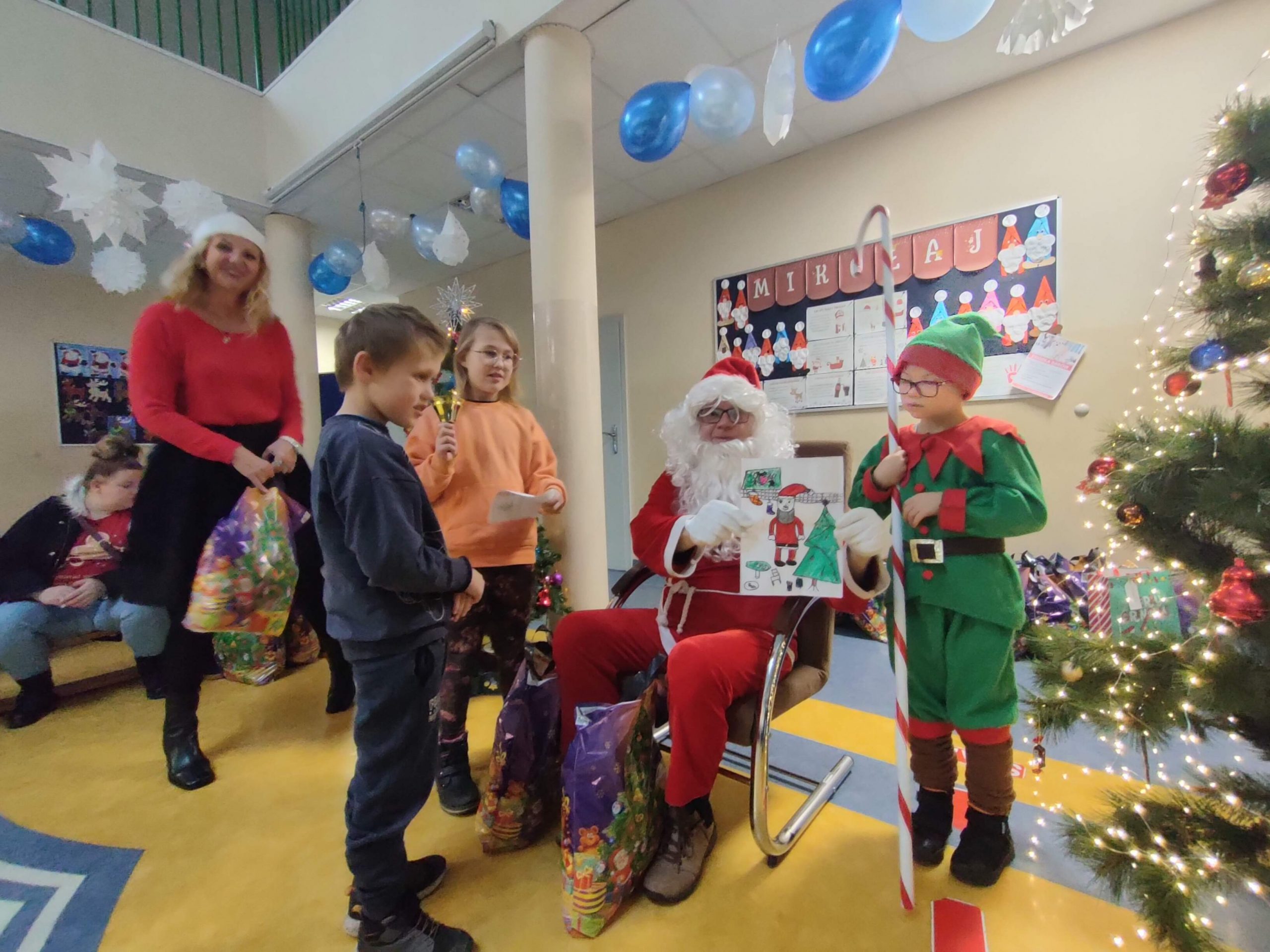 6 grudnia Święty Mikołaj zawitał w murach Szkoły Podstawowej nr 4 im. Jana Pawła II w Lubartowie aby obdarować prezentami podopiecznych Stowarzyszenia Pomocy Dzieciom „Niech się serce obudzi”. Nie wiemy jak dotarł do nas gdyż ani śniegu ani sań nie widzieliśmy. Ale dotarł niezawodnie jak co roku. Mikołajowi pomagały sprytne elfy. Każde z przybyłych dzieci zostało obdarowane słodyczami, a paczki były tak duże, że niektórzy ledwo je unieśli. Nie obyło się bez wierszyków i piosenek, bo przecież na paczkę od Mikołaja trzeba solidnie zapracować. Wszyscy obdarowani z uśmiechem pożegnali Świętego z nadzeją na spotkanie w przyszłym roku.